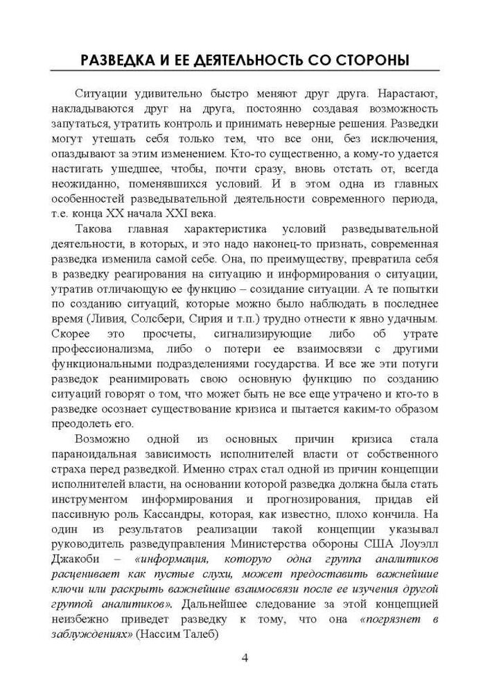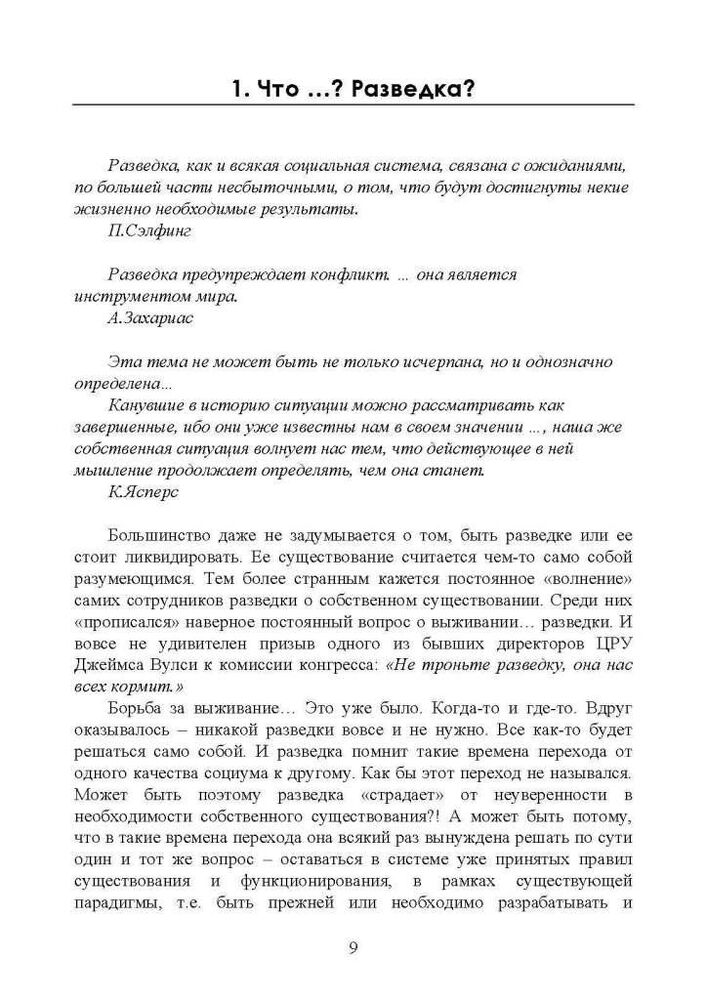 Головною проблемою книги є криза сучасної розвідки. За методологічну основу взято основні положення теорії ігор, теорії соціальних систем, теорії конфліктів. При цьому розвідка вперше розглядається як специфічне соціальне явище та як соціальна структура здатна до саморефлексії та самовідтворення.