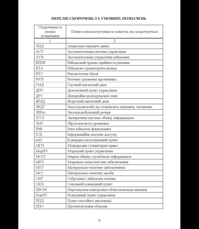 Призначено для слухачів і курсантів вищих військових навчальних закладів, офіцерів штабів бригад і батальйонів, а також може бути використане як довідковий і навчальний матеріал у практичній діяльності органів військового управління тактичної ланки.