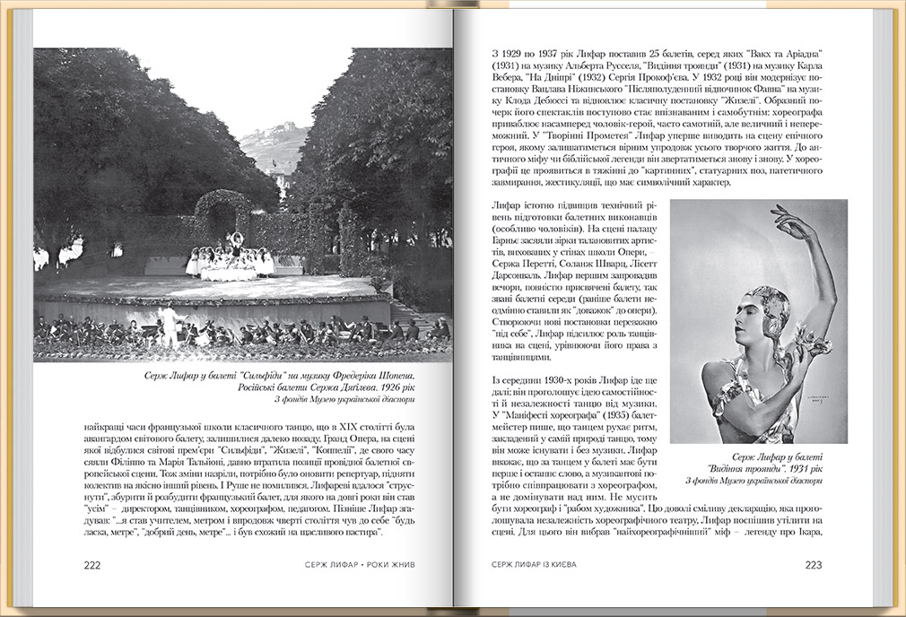 До видання увійшла стаття мистецтвознавиці, директорки Музею української діаспори Оксани Підсухи, в якій висвітлюється життєвий та творчий шлях Сержа Лифаря, відкриваються маловідомі сторінки його біографії. Книга ілюстрована рідкісними фотографіями мистця та історичними світлинами Києва.