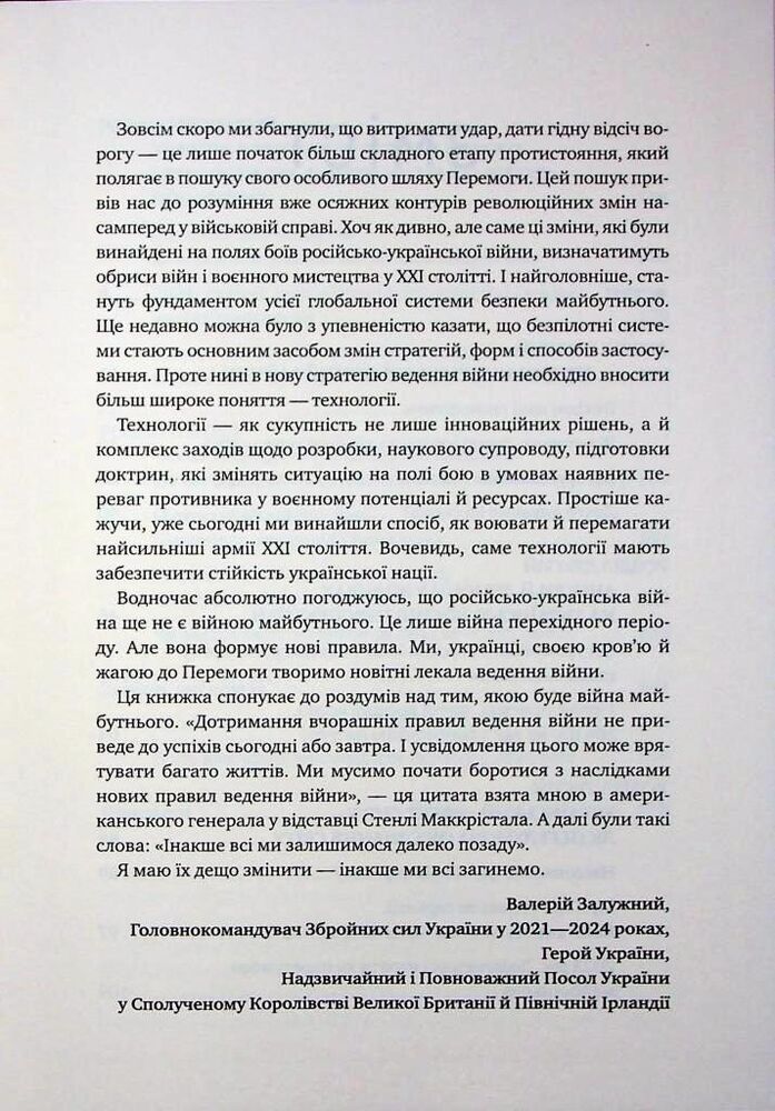 Передмову до книжки написав Валерій Залужний, Головнокомандувач Збройних сил України у 2021—2024 роках, Герой України, Надзвичайний і Повноважний Посол України у Сполученому Королівстві Великої Британії й Північній Ірландії.