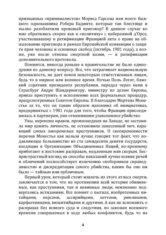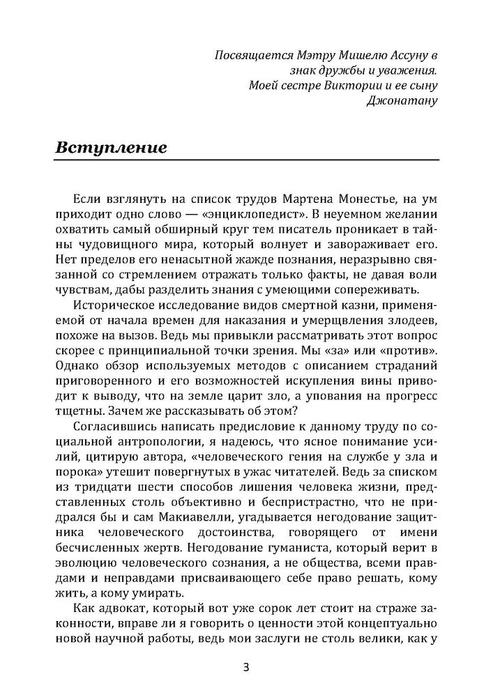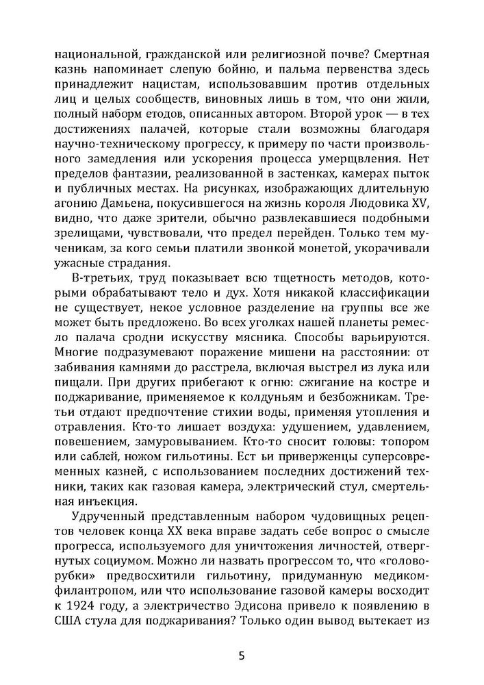 Щороку у світі цілком законно вбивають кілька тисяч людей. Народи, які відмовилися від практики узаконених убивств, нечисленні. Смертна кара, як і раніше, передбачена в законодавствах держав, на території яких проживає дев'ять десятих населення планети. У багатьох країнах проводять масові та публічні страти, у деяких розправах транслюють по телебаченню. Вища міра покарання викликає чимало суперечок у сучасному суспільстві, проте безглуздо судити про філософські, моральні, релігійні чи законодавчі аспекти проблеми, не вникаючи в суть того, що відбувається. Маючи багатший фактичний матеріал, Мартен Монестьє (р. 1942) — відомий письменник і журналіст, автор численних досліджень у сфері соціальної антропології — знайомить читачів з основними способами смертної кари, відомими з історії та застосовуваними в наші дні.