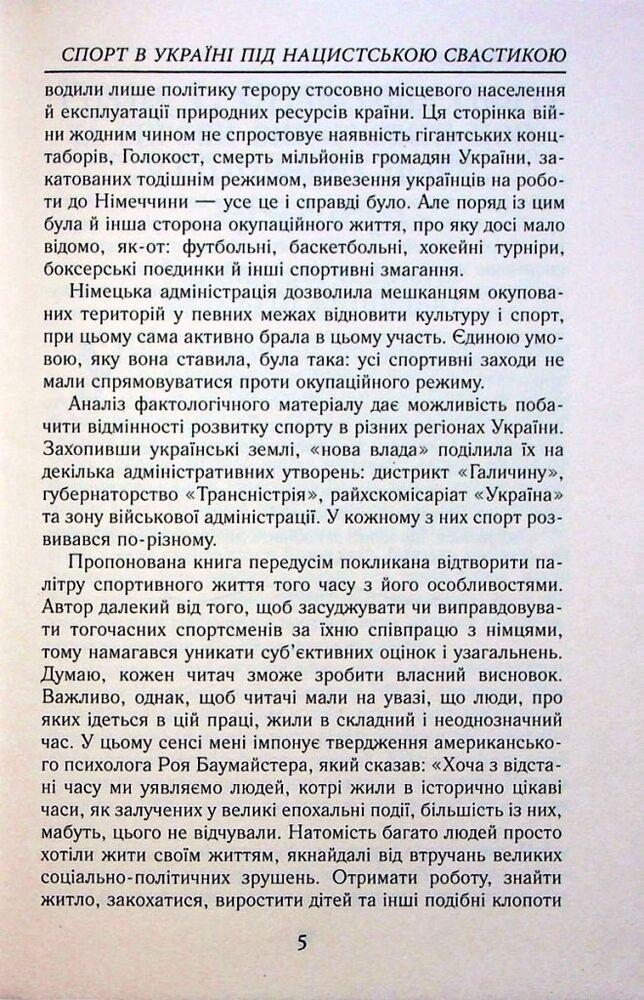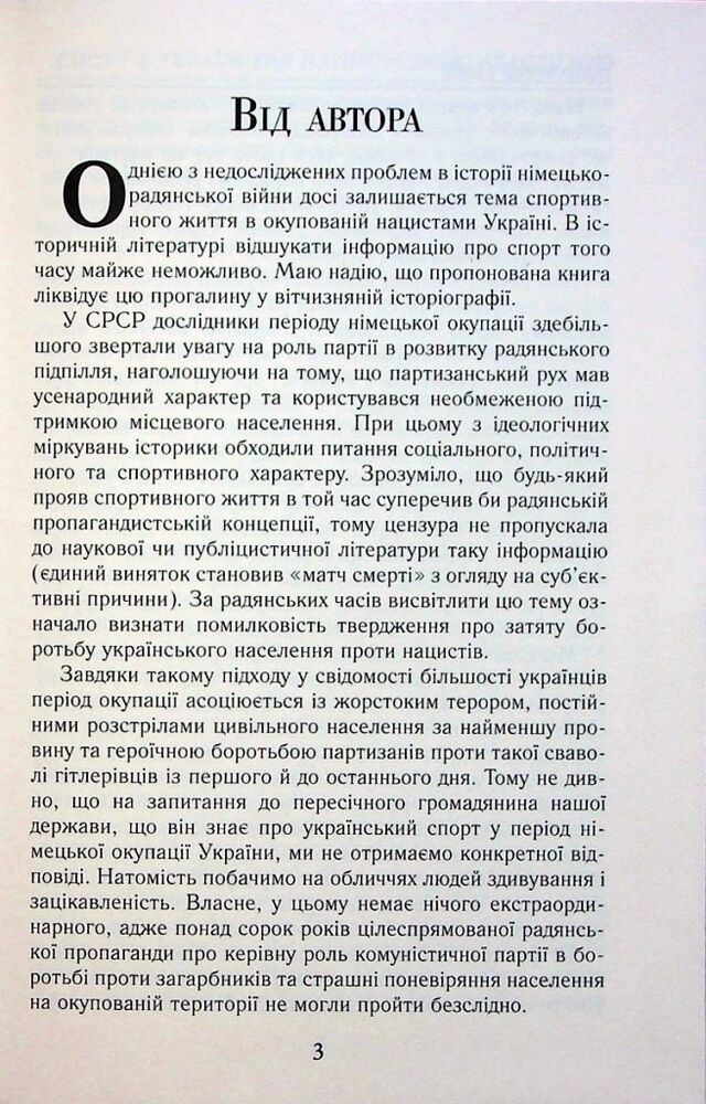 Книга ґрунтується на матеріалах окупаційної преси України, у якій досить змістовно віддзеркалено спортивне життя того періоду, а також на мемуарах, спогадах учасників тих подій.