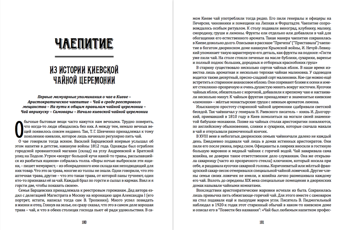 Академически обстоятельный, доказательный и скрупулезный, но при этом поэтичный и трогательный рассказ о повседневной жизни города во всем ее многообразии — от театральных премьер до детских игр; званых обедов в особняках аристократов и миллионеров до чаепитий в скромных студенческих комнатушках; рассказ о том, что носили, что читали, какие спектакли смотрели, что ели и пили, о чем и почему говорили жители Киева середины XIX - начала ХХ века. Это рассказ о городе, как о личности, которая меняется с годами, мудреет и хорошеет, проявляет не самые приятные качества, переживает взлеты и падения, периоды расцвета и не лучшие времена. Из этой книги, полной любви и уважения к прошлому украинской столицы, читатель узнает, как «украинский вкус» врастал в городскую среду, как под его воздействием изменялись мода, привычки и нравы обывателей; познакомится со множеством забавных и впечатляющих историй киевской жизни, большинство из которых представлены широкой публике впервые. Этот рассказ не только изумительно интересен, но и чрезвычайно полезен современному читателю, ибо узнавая подробности жизни и быта киевлян в прошлом веке, он узнает в этих людях себя — с теми же проблемами, мечтами и стремлениями.