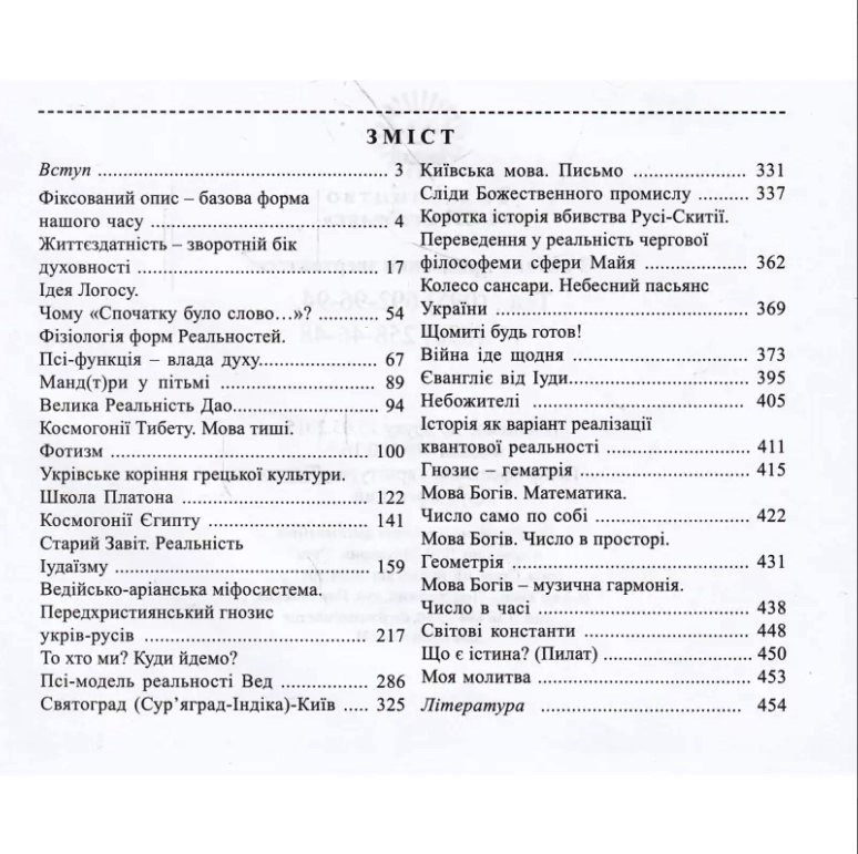 Автор використовує і компонує інформаційний матеріал з багатьох галузей науки (квантової фізики, хімії, біології, філології, теософії, тощо...) та історії.