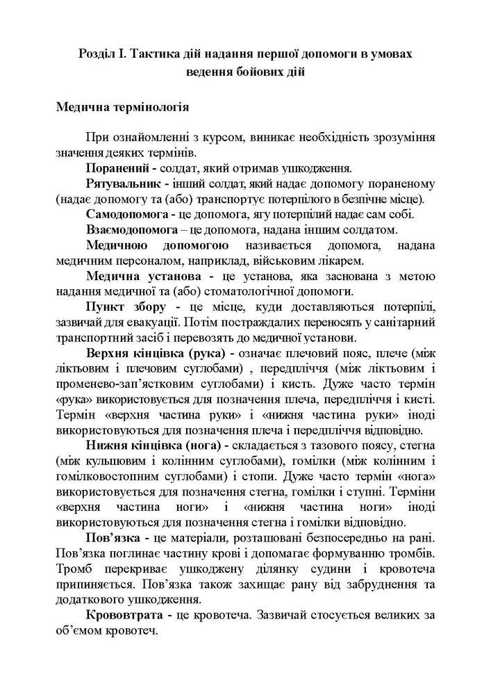Метою навчального посібника є ознайомлення курсантів з основами надання медичної та психологічної допомоги в ході проведення бойових дій, що дозволить підвищити рівень їхніх професійних навиків, які забезпечать зменшення бойових втрат на полі бою.