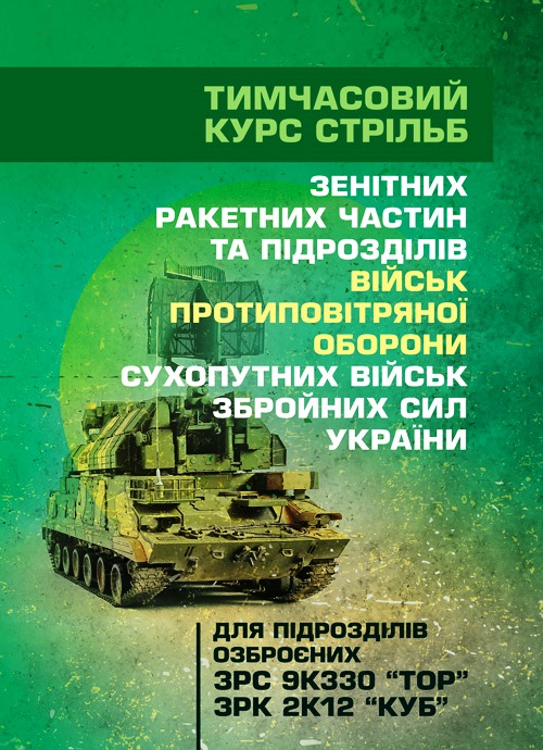 Книга «Тимчасовий курс стрільб зенітних ракетних частин та підрозділів військ протиповітряної оборони Сухопутних військ Збройних Сил України (для підрозділів озброєних ЗРС 9К330 “Тор”, ЗРК 2К12 «Куб»)» – купити та оформити доставку по Києву та всій території України в будь-який зручний для Вас час!