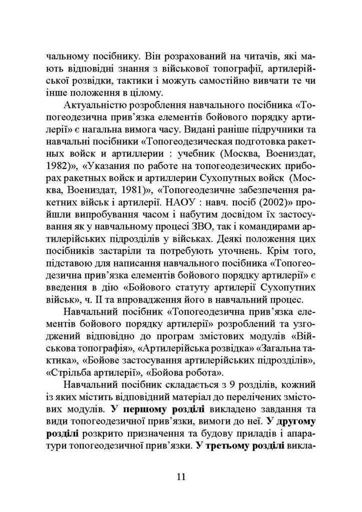 У навчальному посібнику викладено основи будови топогеодезичних приладів і правил роботи на них, організації та проведення топогеодезичної прив’язки в артилерійських підрозділах ланки дивізіон - батарея.