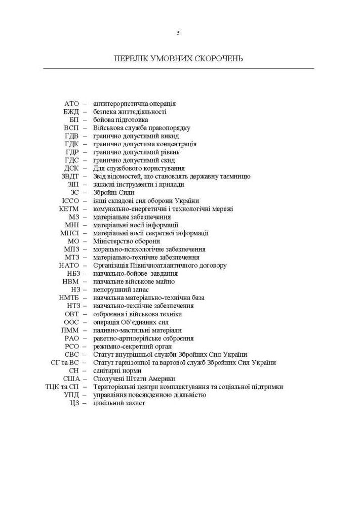 Навчальний посібник призначений для використання курсантами, студентами, науковими і науково-педагогічними працівниками вищих військових навчальних закладів та закладів вищої освіти в освітньому процесі та офіцерським складом військових частин (підрозділів) у повсякденній діяльності.