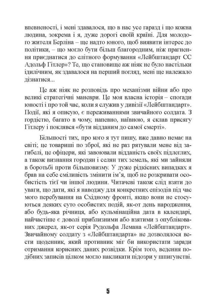 Спогади Ервіна Бартмана — відверта розповідь німецького солдата про свою участь у Другій світовій війні у складі полку, згодом дивізії «Лейбштандарт». Володіючи безсумнівним літературним даром, автор жваво та яскраво описує, як проходив жорсткий відбір, після якого із захопленням вступив до лав новобранців, як тривало навчання, про перебіг боїв і подробиці фронтового побуту. Херсон, Маріуполь, Таганрог, Ростов-на-Дону, потім перекидання в Нормандію і знову Східний фронт — бої в Харкові, під Прохорівкою, останні битви під Берліном і табір для військовополонених — такою є географія військових доріг Ервіна Бартмана. Колишній солдат визнає, що його вожді скоїли жахливі злочини проти людяності, однак, підбиваючи підсумок свого життя, він з гордістю згадує пройдений шлях і не шкодує про свій вибір або вчинки.