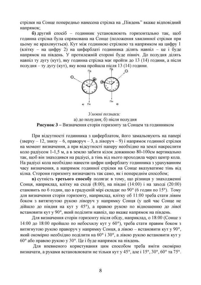 Зокрема в курсі висвітлено необхідні знання щодо: способів орієнтування на місцевості без карти; вибір та використання орієнтирів; визначення сторін горизонту вдень: за компасом, за Сонцем, за Сонцем і годинником; відлік часу та визначення магнітного азимуту за компасом (годинником), за різними ознаками місцевості.