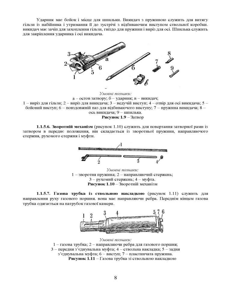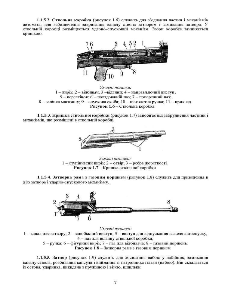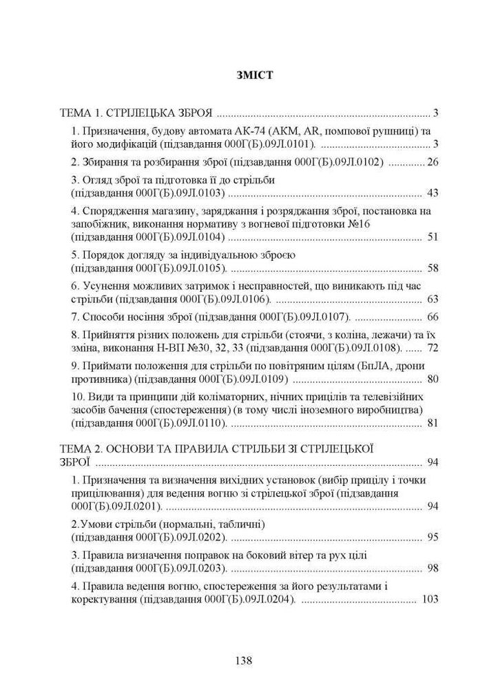 Зокрема в курсі висвітлено необхідні знання щодо стрілецької зброї (АК-74): призначення та будова; збирання та розбирання, огляд, підготовка до стрільби та; способи носіння зброї; види та принципи дій коліматорних, нічних прицілів та телевізійних засобів бачення (спостереження) (в тому числі іноземного виробництва) В кінці наведено завдання, умови та порядок їх виконання, оціночні листи.
