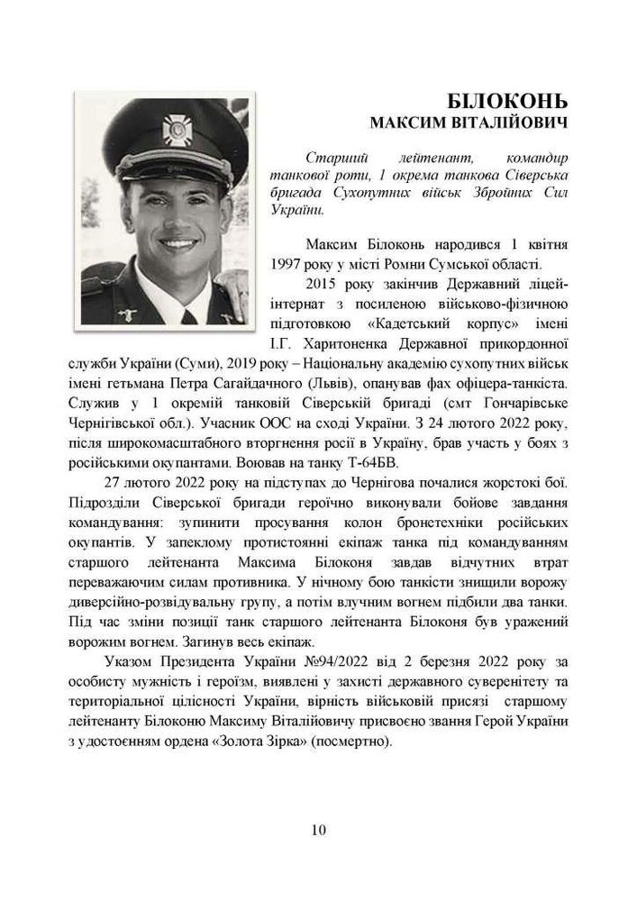 Збірник містить біографічні дані, інформацію щодо проходження військової служби, участі у бойових діях та обставин загибелі військовослужбовців Збройних Сил України, удостоєних звання Герой України посмертно у 2022 році. Список складено на основі оприлюднених Указів Президента України.