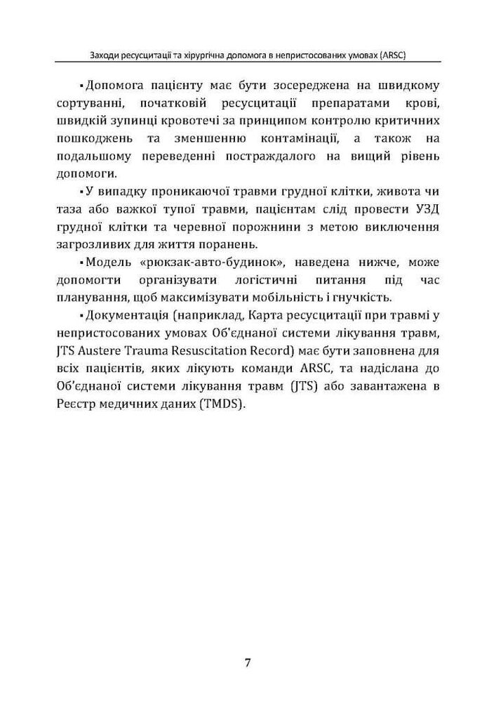 Книга «Заходи ресусцитації та хірургічна допомога в непристосованих умовах (ARSC) (CPG ID: 76). Об’єднана система лікування травм. Настанови з клінічної практики (JTS CPG)» – купити та оформити доставку по Києву та всій території України в будь-який зручний для Вас час!