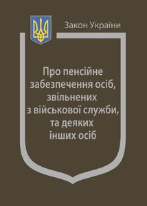 Закон України «Про пенсійне забезпечення осіб, звільнених з військової служби, та деяких інших осіб»: чинне законодавство з останніми змінами та доповненнями.