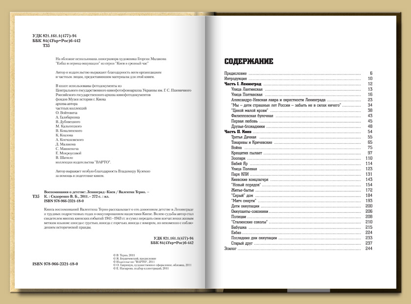 Книга воспоминаний Валентина Терно рассказывает о его довоенном детстве в Ленинграде и трудных подростковых годах в оккупированном нацистами Киеве. Волею судьбы автор стал свидетелем многих киевских событий 1941-1943 гг. и сумел передать свои впечатления живым метким языком: иногда с грустью, иногда с горечью, иногда с юмором, но неизменно с соблюдением исторической правды.