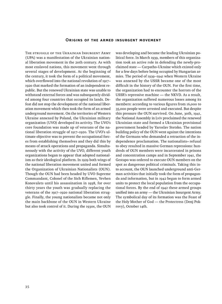 Це видання допоможе кожному зрозуміти, чому і як українці чинили спротив ворогу, який значно переважав їх у силі; побачити у завзятті вояків УПА джерело незламності вояків ЗСУ. У книжці опубліковано кілька сотень світлин і документів з архівів Центру досліджень визвольного руху та Служби безпеки України.