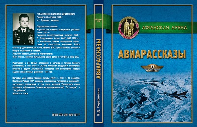 В марте месяце 2015 года вышла из печати новая художественно-публицистическая книга серии: В. Д. Герасименко Афганская арена. Авиарассказы / Под редакцией и при участии В. И. Аблазова. — Киев-Рига: МИЦ «Мединформ», 2015. — 272 с.: илл. 88 В книге публикуется 35 рассказов, основанных на реальных событиях из жизни автора, который работал военным советником в Афганистане в период 1979–1981 гг. Рассказы позволяют познакомиться с малоизвестной широкому читателю неординарной служебной деятельностью и бытом военных советников в Афганистане, непростыми взаимоотношениями в коллективах советников и между советниками и афганскими офицерами, а также с послевоенными судьбами ветеранов войны в Афганистане. Книга рассчитана на широкий круг читателей, которые интересуются событиями в Афганистане, на ветеранов войны и вооруженных сил. Автор — Герасименко Валентин Дмитриевич родился 30 октября 1938 г. в г. Луганске, Украина. Образование высшее: Харьковское военное авиационное училище связи, 1959 г., Киевский политехнический институт, 1968 г. В Вооруженных Силах СССР 1956 — 1990 гг.: от начальника станции авиационной радиосвязи до заместителя начальника Войск связи и радиотехнического обеспечения ВВС Прибалтийского Военного Округа, полковник в отставке. Участник боевых действий в Афганистане: 1979-1981 гг. советник Начальника Войск связи и РТО ВВС и ПВО ДРА. Участвовал в 34 боевых операциях в органах и группах боевого управления, в том числе в составе экипажей воздушных командных пунктов и других летательных аппаратов при выполнении боевых задач в зонах боевых действий — 511 час. Награды: два ордена Красной Звезды (1979 г., 1981 г.), 18 медалей, Почетный Радист СССР, награды иностранных государств и неправительственных организаций, в том числе медалей Украинского союза ветеранов Афганистана (воинов-интернационалистов) «За заслуги» и «За доблесть». Живет в г. Риге. Книга издана на средства автора.