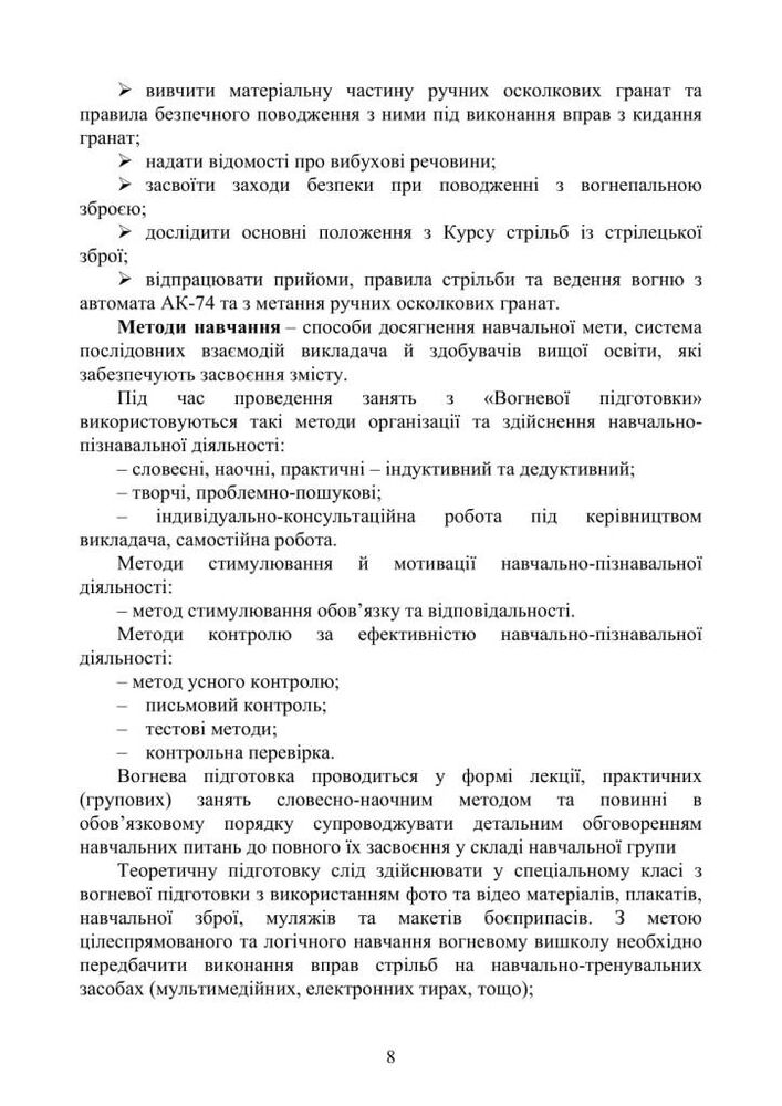 Навчальний матеріал сприятиме підготовці здобувачів вищої освіти до служби в ЗСУ, їх національно-патріотичному вихованню, формуванню навичок захисту життя і здоров’я як в умовах мирного часу так і в умовах воєнного стану.