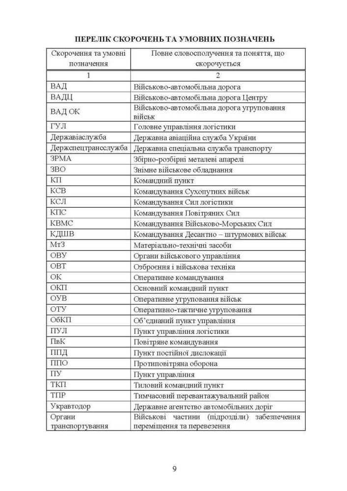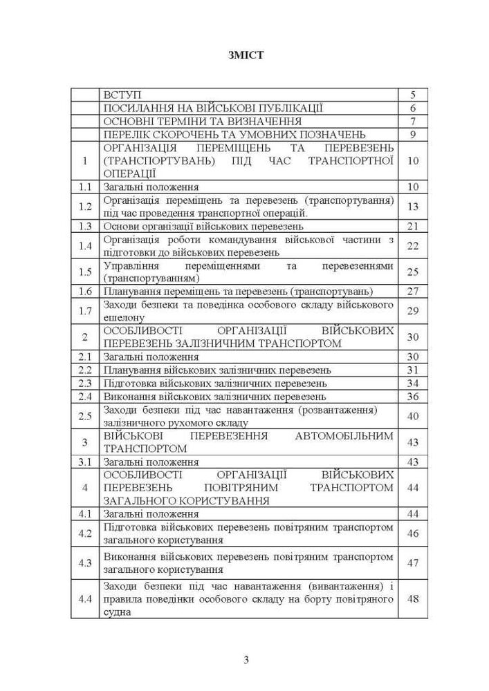 Боевой устав определяет задачи, цели, принципы, основы организации, порядок планирования и управления функциональной сферой логистического обеспечения перемещения и перевозки (транспортировки) в ДШУ. В нем изложены основные положения по организации и осуществлению военных перевозок в транспортных операциях.