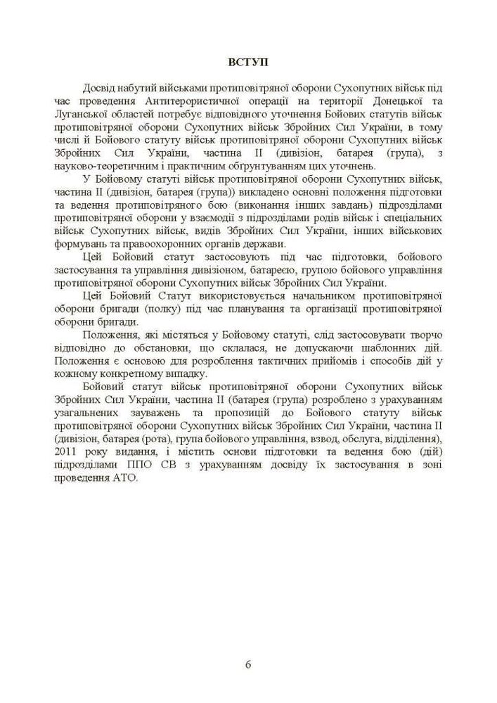 Книга «Бойовий статут військ протиповітряної оборони Сухопутних військ Збройних Сил України. Частина ІІ (дивізіон, батарея (група))» – купить и оформить доставку по Киеву и всей территории Украины в любое удобное Вам время!