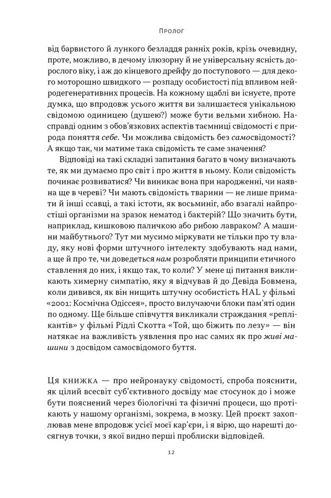 Автор доступно показывает, как тело человека влияет на его сознание, как формируется наш сознательный опыт здесь и сейчас, как тесно связаны самовосприятие и психологический контроль, является ли свобода воли иллюзией, что на самом деле означает «быть собой». Он также уделяет большое внимание вопросу, может ли искусственный интеллект стать сознательным, и если да, чем это грозит человечеству?