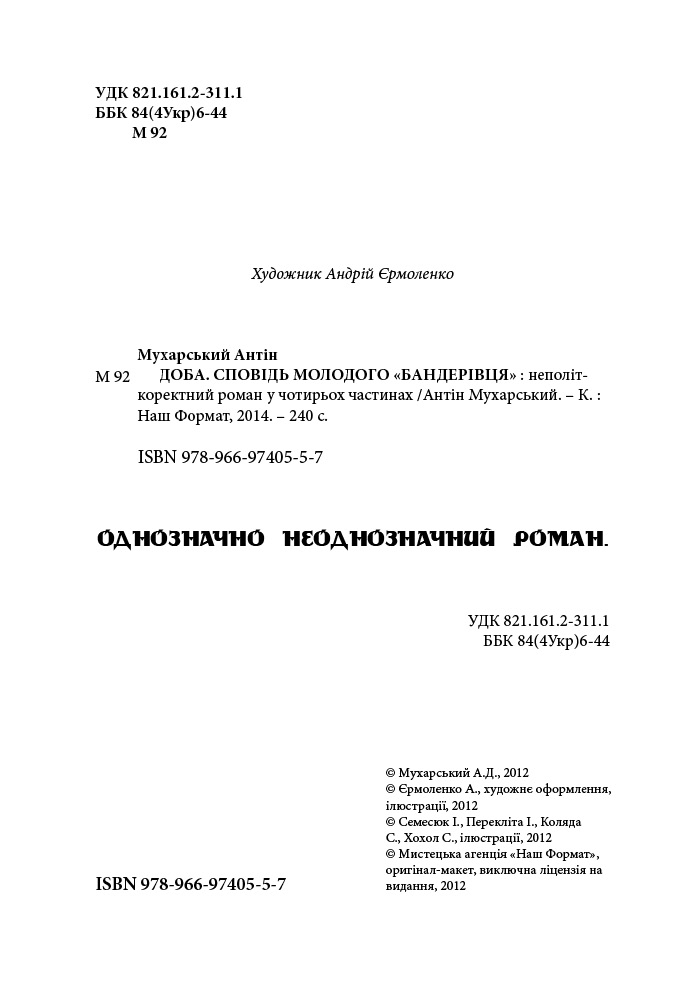 Книга вийшла друком у Мистецькій Агенції «Наш Формат» спільно з видавництвом «Зелений пес» попри всі перешкоди. Нагадаємо, що побачивши ілюстрації Андрія Єрмоленка та прочитавши вступ до роману, друкувати його відмовились три друкарні поспіль! Мовляв, у них цензура не пропустить.