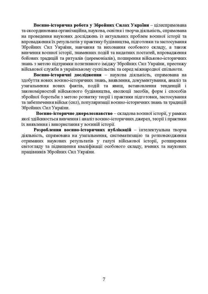 Эта Доктрина определяет основные принципы планирования, координации, осуществления военно-исторической работы в процессе подготовки и применения Вооруженных Сил Украины. Она определяет роль органов военного управления, организационных структур в осуществлении военно-исторической работы и устанавливает ответственность за процессы ее планирования, проведения и результативности.
