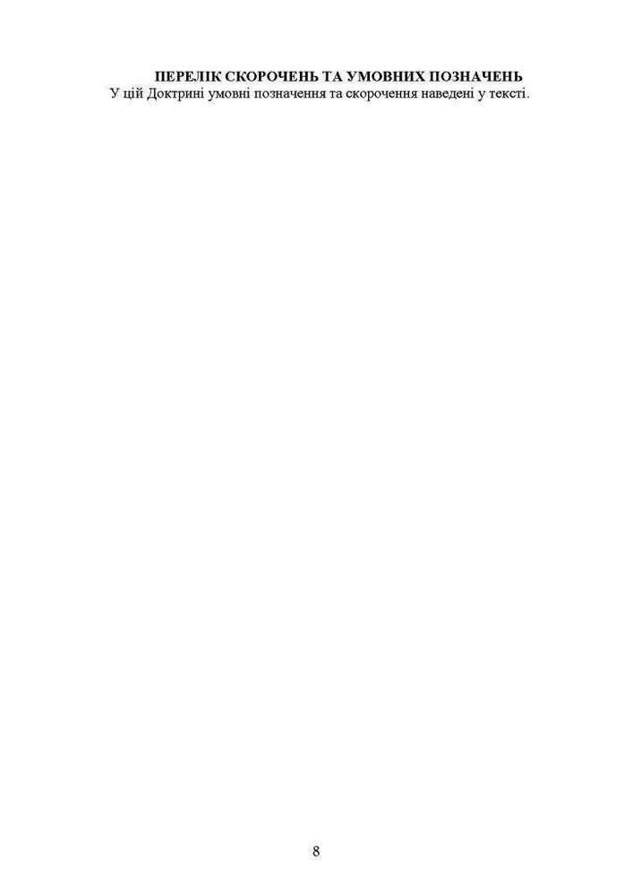 Доктрина разработана рабочей группой офицеров и работников Вооруженных Сил Украины Военно-научного управления Генерального штаба Вооруженных Сил Украины совместно с Национальным университетом обороны Украины имени Ивана Черняховского, Национальной академией сухопутных войск имени гетмана Петра Сагайдачного, Иван альным военно- историческим музеем Вооруженных Сил Украины и согласовано с заинтересованными органами военного управления Вооруженных Сил Украины, структурными подразделениями Генерального штаба Вооруженных Сил Украины.