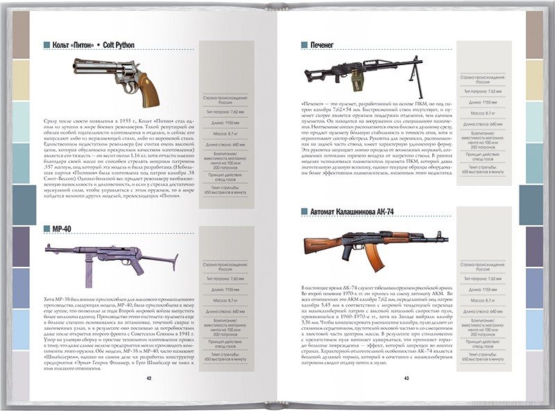 Для каждой модели приводятся краткая история создания, год и страна-разработчик, ТТХ, принцип действия.