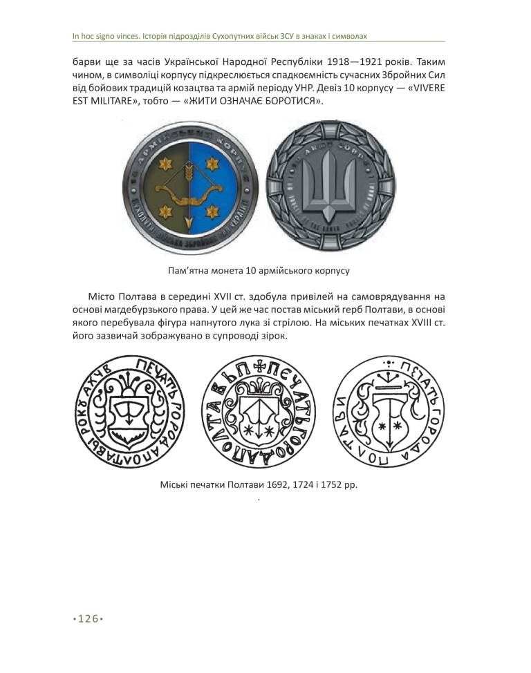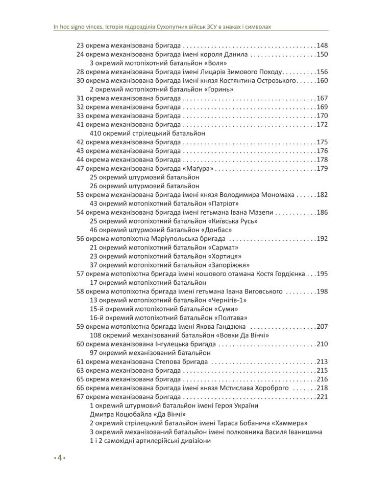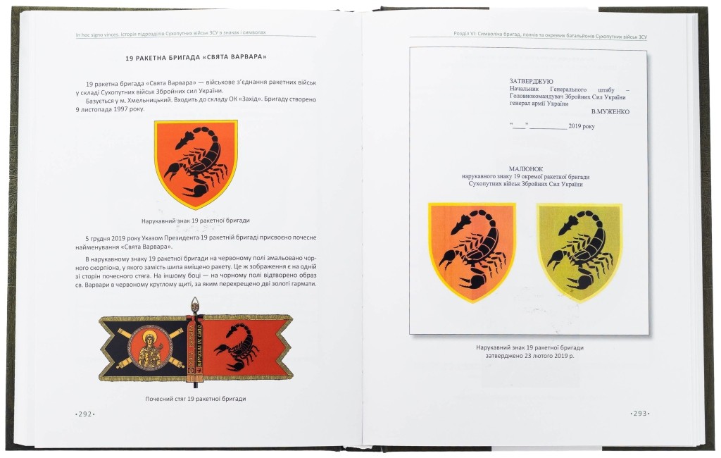 У праці «IN HOC SIGNO VINCES. Історія підрозділів Сухопутних військ ЗСУ в знаках і символах» представлена актуальна символіка підрозділів Сухопутних військ Збройних сил України. У кожному з цих знаків нерозривно переплетені історія та сьогодення, що створює неповторну особливість сучасної мілітарної символіки України.