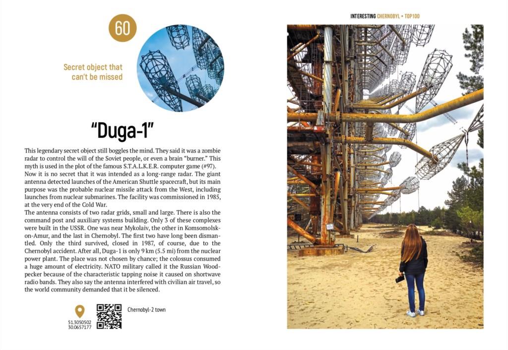 Читатель узнает, как произошла катастрофа, «прогуляется» по заброшенным военным объектам, включая исполинский радар «Дуга», увидит кладбища техники ликвидаторов аварии, заглянет в квартиры жителей Припяти, брошенные на следующий день после страшного взрыва, познакомится с гигантскими сомами и почти ручным лисом Семеном, прикормленным туристами, ужаснется тому, как за тридцать лет обветшал и зарос лесом некогда симпатичный город советских атомщиков. Видя покрытые пылью выцветшие игрушки, оставленные своими маленькими владельцами, ржавые машинки в парке развлечений, навсегда застывшие неподалёку от знаменитого припятского колеса обозрения, радостные лица пионеров, глядящих с мозаичных панно через заросли тополей, читатель поймет, как внезапно, трагично и необратимо изменилась жизнь десятков тысяч людей.