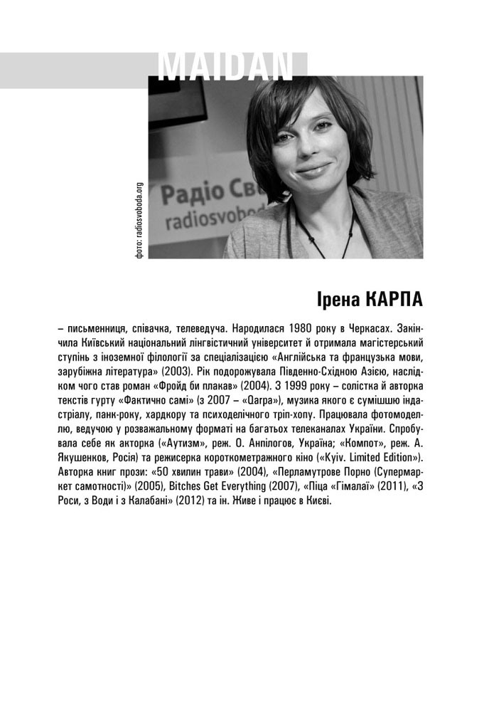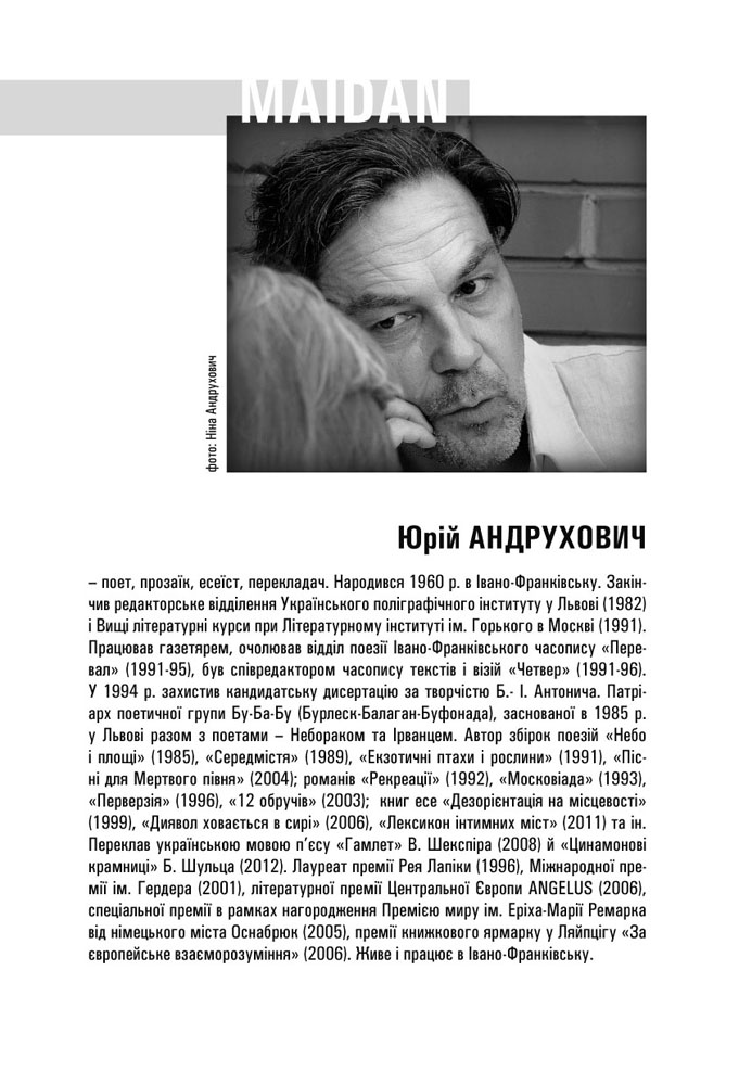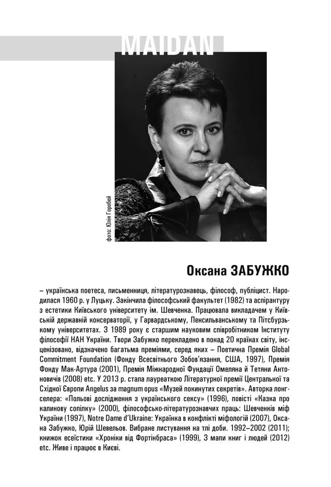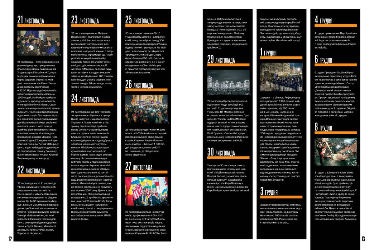 Публічні інтелектуали, громадські діячі, філософи, історики, письменники, художники, герої й очевидці революційних днів української історії в щоденниках, есе й ексклюзивних інтерв'ю розповіли про темний і світлий бік Майдану, версії причин і наслідків, «білих плям» і таємничих збігів у подіях листопада-лютого 2014 року.