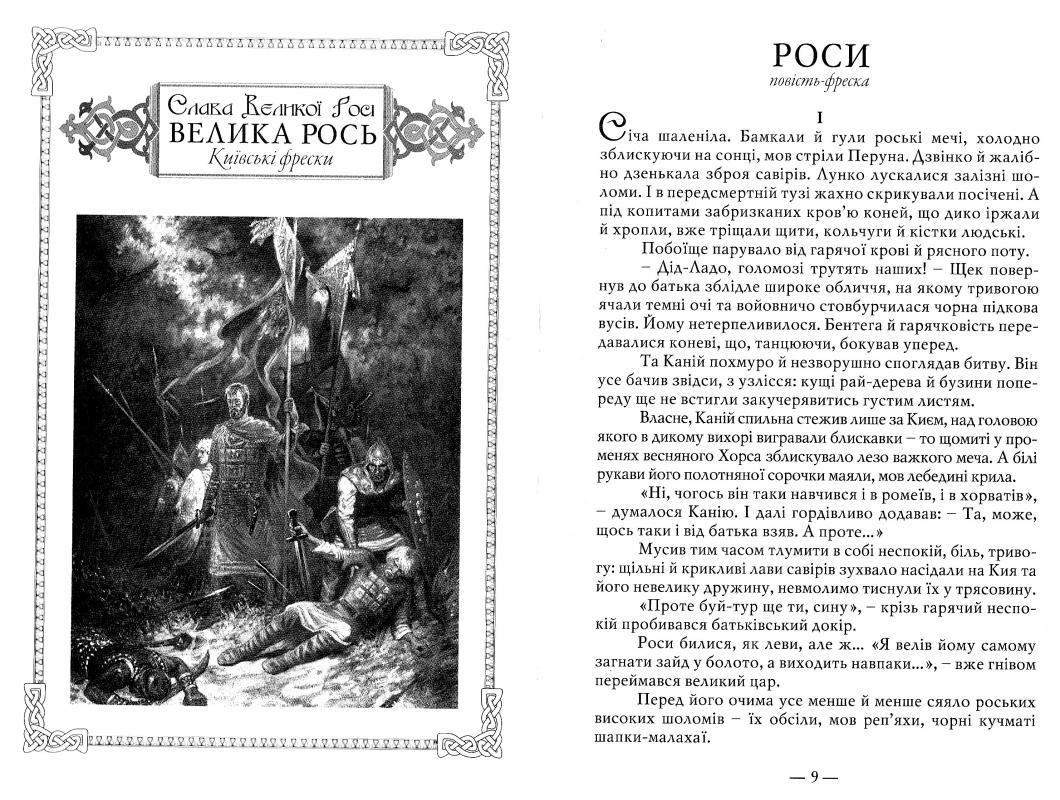 Вперше видана під назвою «Київські фрески», книга вмістила в собі художньо-історичні повісті та оповідання про минувшину наших предків, мешканців теренів, які ми зараз знаємо під назвою Київська Русь. В ті давні часи, коли вершилося минуле і закладалися основи України-Русі, Роси що жили понад річкою Рось (теперішня Центральна Україна), називали свою землю Росією, звідки пізніше і пішла назва Рось-Русь. Зараз саме час відгорнути покривало забуття і повернути нам наші давні назви, присвоєні «сусідами», які за відсутності власної славної історії, не гребують «запозичити» її у нас. Автор Сергій Плачинда, на основі доступних історичних джерел, веде нас сторінками книги з неймовірно цікавими пригодами наших славних предків Канія, Либідь, Кия та інших, захоплює і змушує читачів з головою поринути в ті давні часи. Книга рекомендована для читання в середніх та старших класах школи.