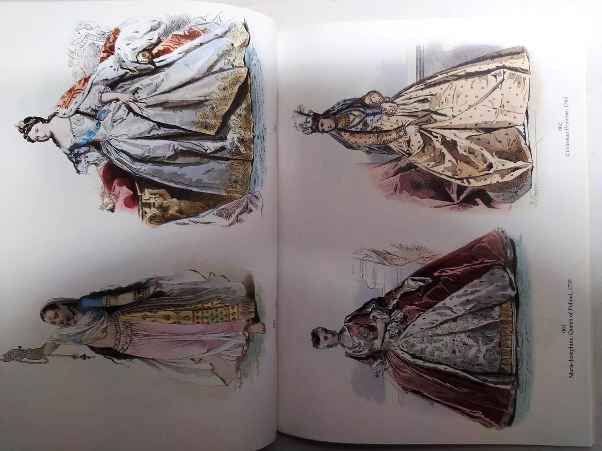 Прекрасная панорама моды детализирует то, что носили состоятельные мужчины и женщины с 1477 по 1868 год. Девяносто шесть полноцветных гравюр изображают ослепительные портреты в полный рост таких выдающихся людей, как Петр Первый, Анна Болейн, королева Елизавета I, дож Венецианской и принцессы Баварской, к менее конкретной японке, греческой танцовщице и североамериканскому индиану.