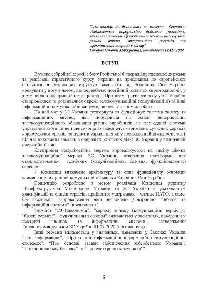 Концепция предназначена для создания условий внедрения сервис-ориентированной архитектуры, обеспечения развертывания отказоустойчивой, Электронной коммуникационной сети Вооруженных Сил Украины (далее - ЭКМ ВС Украины) и предоставляет описание функционала ее основных элементов (ссылка а).