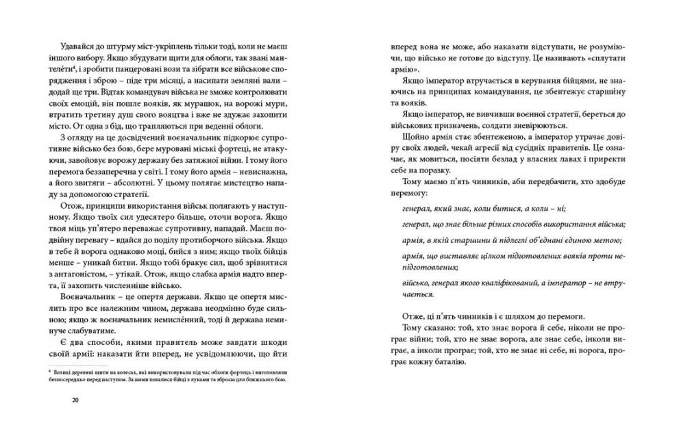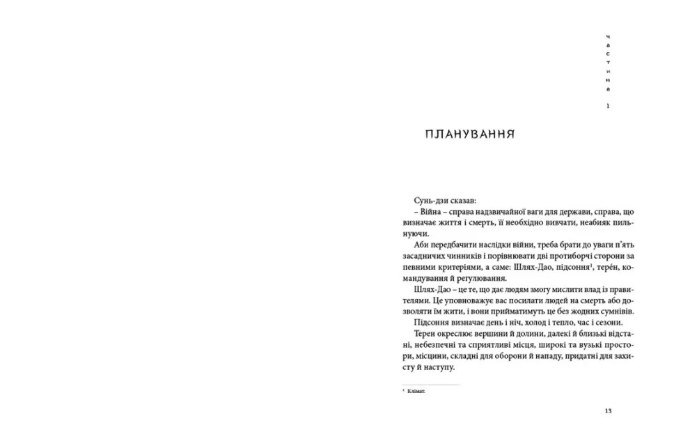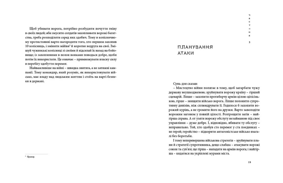 Українською «Мистецтво війни» Сунь-дзи тлумачиться вперше. Перекладач, історик філософії Сходу, переконаний, що філософськостратегічний твір давньокитайського воєначальника та викладені в ньому ідеї і поради стосуються не лише стратегії бою і завоювання, але й усієї діяльності людини, зокрема й бізнесу.