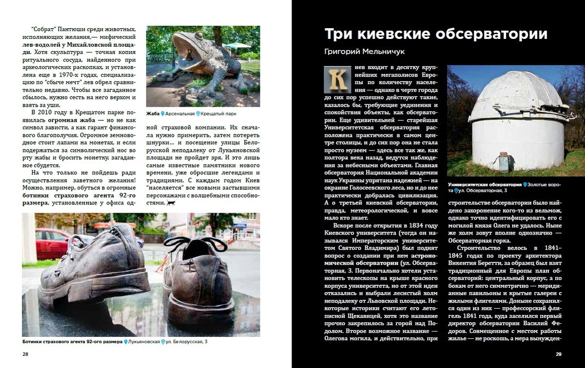 Путеводитель «Необычный Киев» состоит из 37 глав, описывающих наиболее интересные места города, не относящиеся к «стандартным» туристическим достопримечательностям. Читатель узнает о более чем 250 объектах, расположенных как в черте самого Киева, так и в Киевской области. Текст сопровождается 220 фотографиями, большинство которых публикуется впервые.