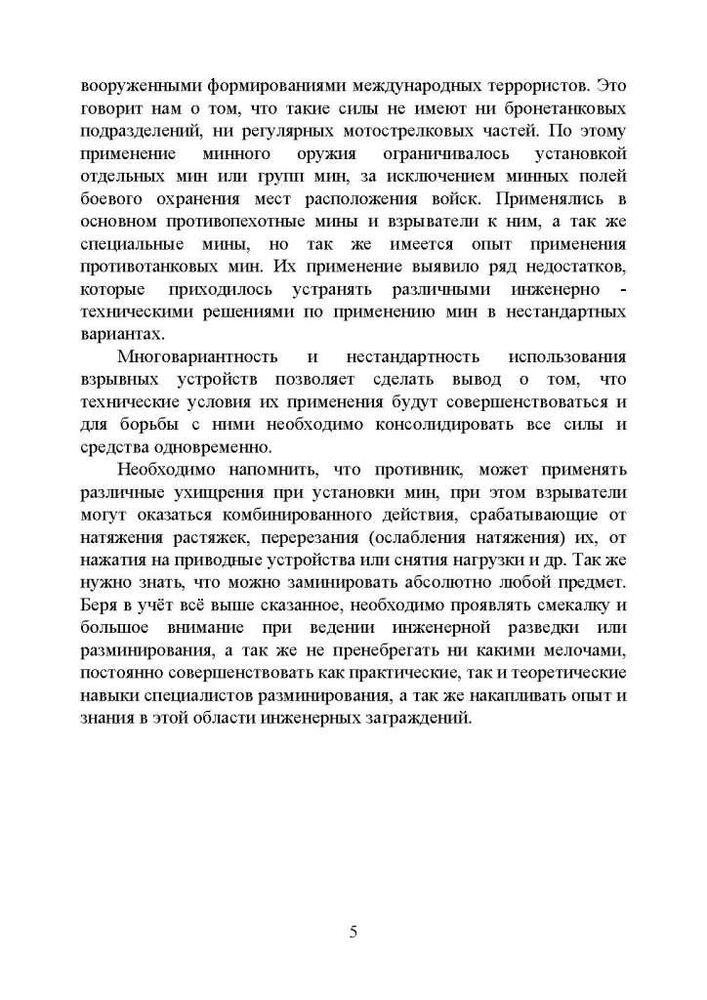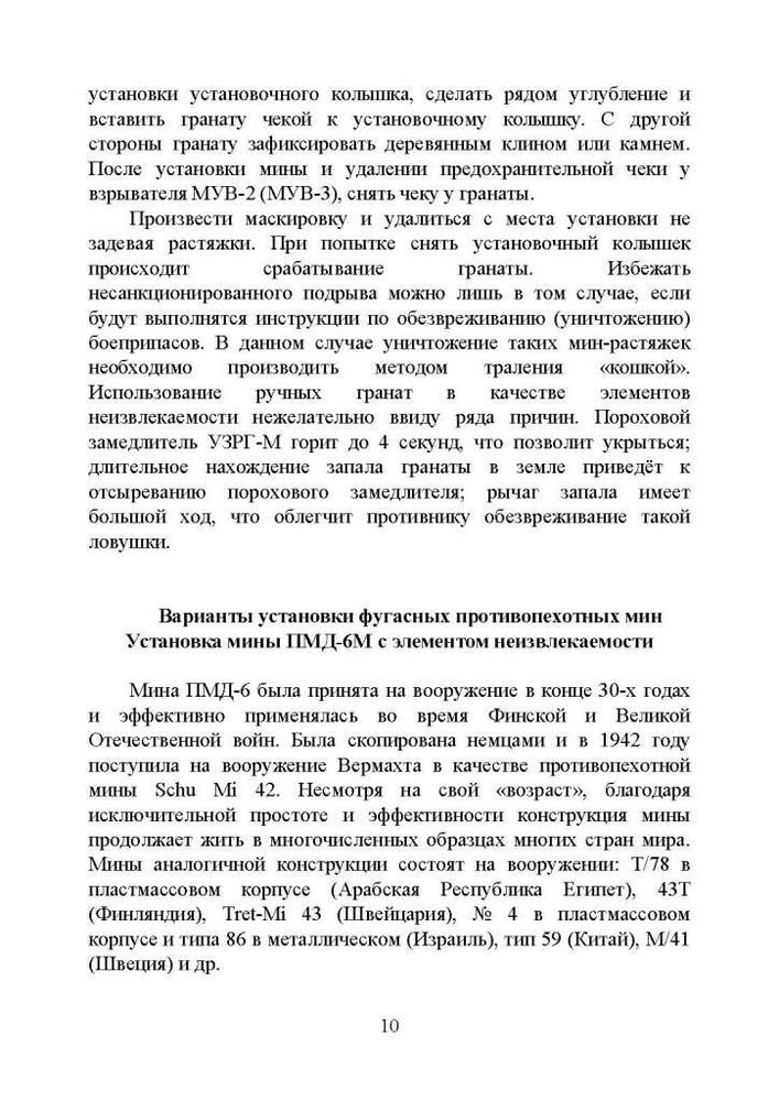 Рассмотрены возможные варианты применения инженерных боеприпасов и других взрывоопасных предметов, используемых и применяемых нетрадиционно или по нестандартным схемам установки; дан анализ возможных мест установки и технических решений, как самих элементов конструкций ВУ, так и вариантов их устройства в целом.