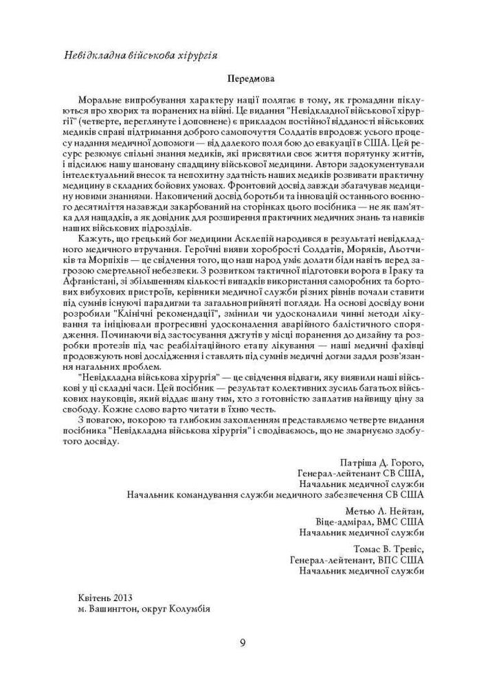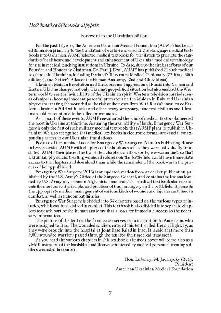 Ознакомление с опытом военных хирургов США будет полезным для военных хирургов и организаторов военно-медицинского обеспечения Вооруженных Сил Украины.