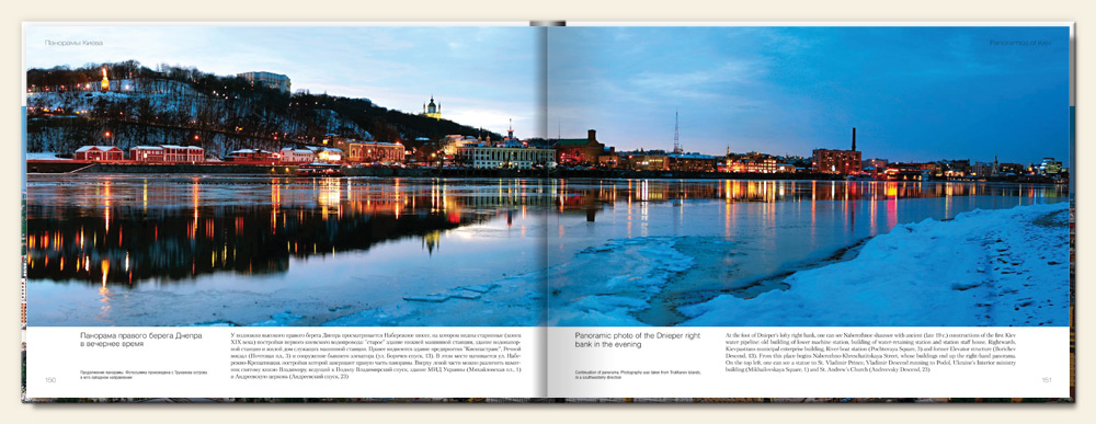 Предлагаемый Вашему вниманию фотоальбом современных панорам столицы Украины – города Киева – по-своему уникален, поскольку большинство помещенных в нем фотоснимков сделаны с крыш или верхних этажей сооруженных в престижных районах города элитных домов, гостиниц и офисных зданий, которые теперь, по вполне объективным причинам, практически недоступны.