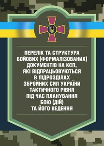 Книга «Перелік та структура бойових (формалізованих) документів на КСП, які відпрацьовуються в підрозділах Збройних Сил України тактичного рівня під час планування бою (дій) та його ведення (відділення, взвод, рота, батальйон та їм рівні)» – купить и оформить доставку по Киеву и всей территории Украины в любое удобное Вам время!