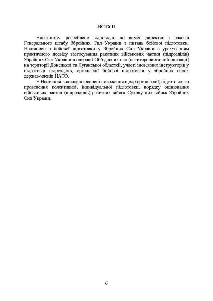 Это руководство определяет основы системы подготовки ракетных войск Сухопутных войск Вооруженных Сил Украины, основные положения планирования, обеспечения, проведения и руководства подготовкой, а также ее оценки (сертификации).