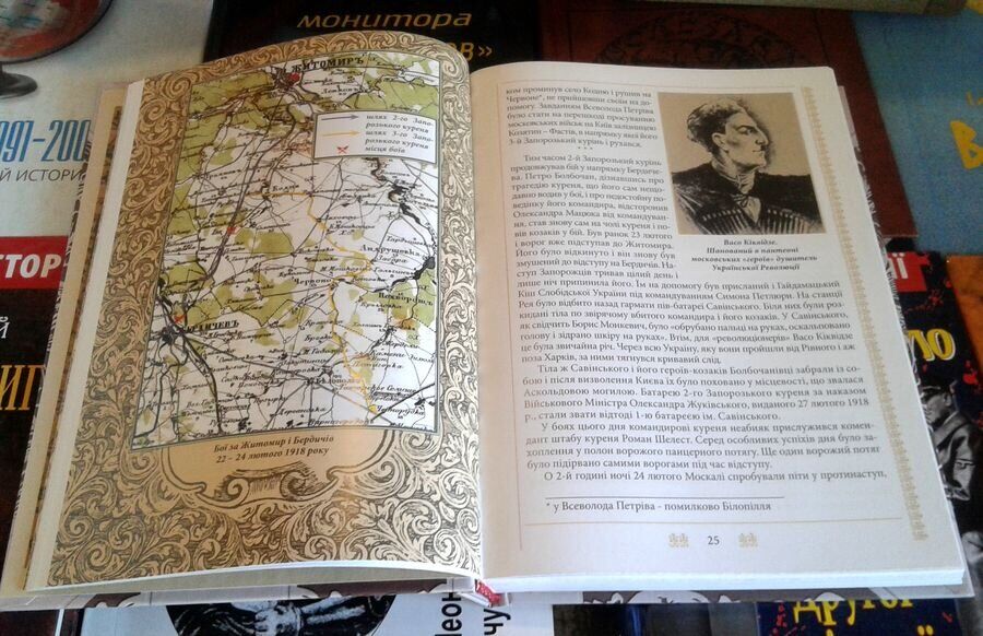 Крім безпосереднього викладення матеріалу про бойові операції в книзі приділено увагу історії формування Окремої Запорозької дивізії, починаючи від Окремого Запорозького загону Армії УНР, створеного 9 лютого 1918 р. наказом Військового Міністра УНР Олександра Жу-ківського. Книга супроводжується великою кількістю ілюстрацій (усього 130), що унаочнюють події тих часів, а також кольоровими мапами (усього 13) з нанесеними на них подіями, згадуваними у книзі. У кінці книги вміщено додатки, які дозволять читачеві поглибити знання про згадувані у ній події (39 статей) та про осіб (155 статей), що брали в них участь.
