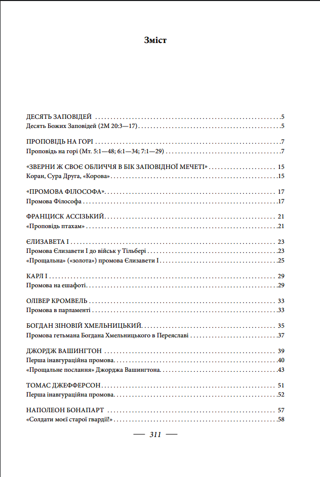 Історію творять видатні особистості. Але чи можуть слова змінити її хід? Звичайно, можуть, якщо вони були вимовлені великою людиною. Ця книга є зібранням публічних промов людей різних епох і народів — від найдавніших філософів до сучасних політиків, громадських і релігійних діячів. Мойсей, Франциск Ассізький, Богдан Хмельницький, Джордж Вашингтон, Наполеон Бонапарт, Михайло Грушевський, Вінстон Черчілль, Джон Кеннеді, Мартін Лютер Кінг, Мати Тереза… У виступах цих та інших найвидатніших персон можна знайти слова та думки, які не залишать нікого з читачів байдужими. З ними можна погоджуватися і сперечатися, але харизма кожного з ораторів і досі відчувається навіть зі сторінок книжки.
