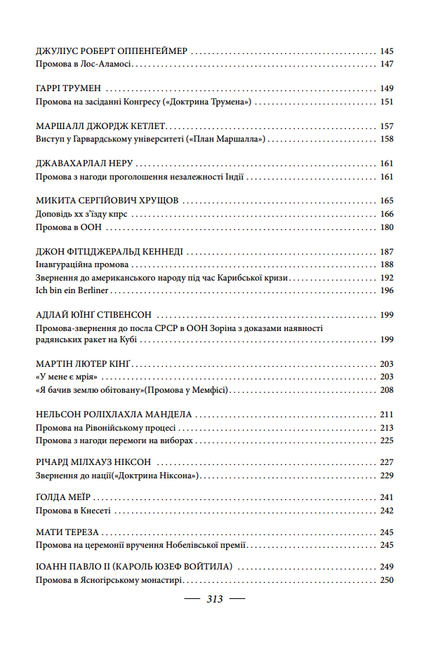 Промови, що увійшли до видання, це не тільки шедеври ораторської майстерності, це віхи в історії людства, які є відправними точками подій, що змінили світ.