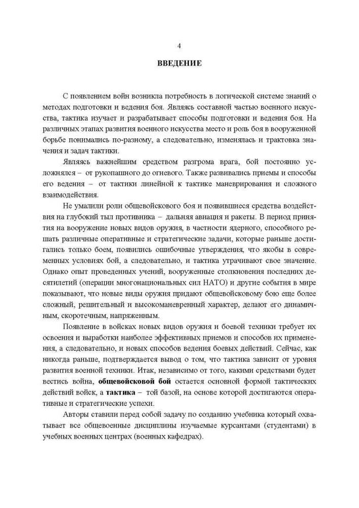 Учебник отвечает Учебным программам подготовки студентов учебного военного центра при высшем учебном заведении по тактическим дисциплинам: «Общая тактика», «Огневая подготовка», «Радиационная, химическая, биологическая защита», «Военная топография».