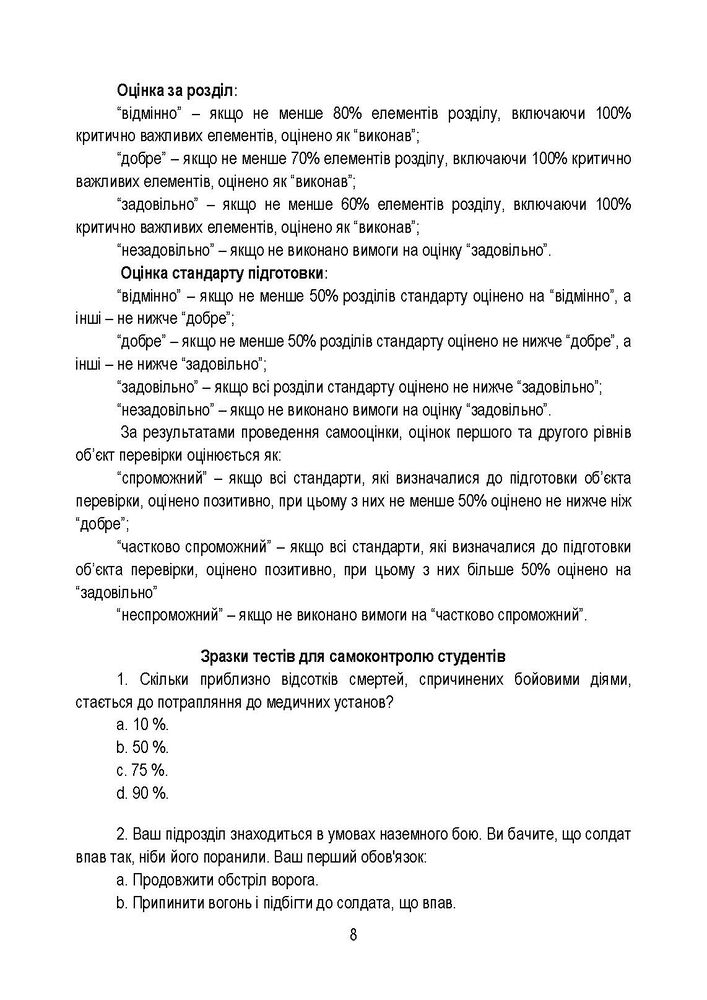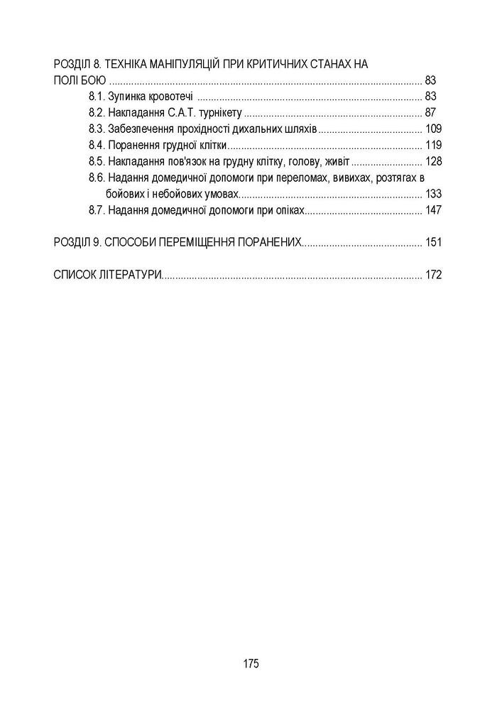 У навчальному посібнику висвітлено основні питання щодо практичних навчань по користуванню сучасною тактичною аптечкою, етапи надання першої допомоги в зонах обстрілу та укриття, способи евакуації поранених.