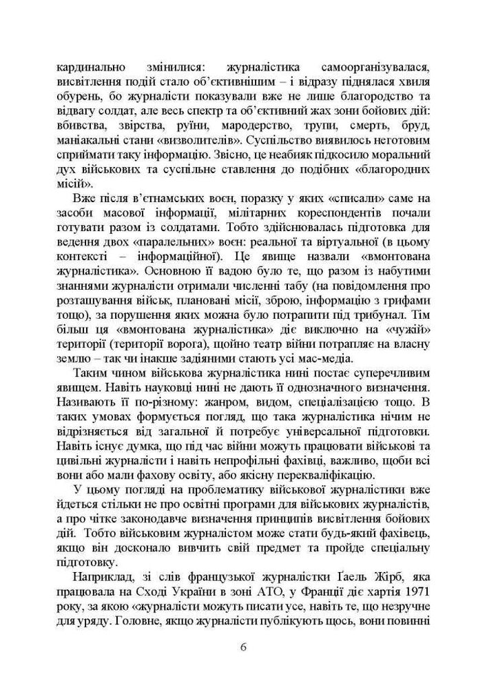 Предлагаемое издание предоставляет исторический и текущий анализ военной журналистики в условиях военных действий в Украине, правовой статус военных журналистов, порядок взаимодействия ВСУ и отечественных и иностранных медиа.
