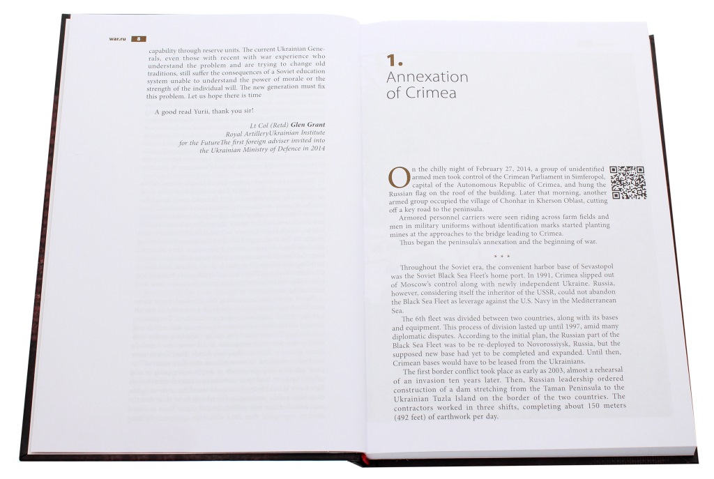 WAR.ru – это документальное исследование первого года российско-украинской войны. День за днем, с начала аннексии Крыма (февраль 2014) до финала Дебальцевской битвы (февраль 2015). События изображены в хронологическом порядке. Информация специально представлена в максимально сжатой форме и на языке, доступном для рядового читателя. Все необходимые для понимания процессов термины и постулаты – также объяснены "простыми словами". Для понимания причин и предпосылок войны предоставлены минимально необходимые исторические сведения и примеры. Вся информация широко доступна в открытых источниках. Ее можно легко проверить и получить углубленное понимание течения того или иного отдельного эпизода. Для улучшения понимания сути событий войны и создания определенного "эффекта присутствия" - книга сопровождается ссылками на реальное видео с места событий, а также минимально нужными картами и схемами. В книге изображено взаимное влияние информационной составляющей боевых действий на реальное положение вещей и наоборот. Изображены принципы работы пропаганды и методы их использования на примере работы российских СМИ.