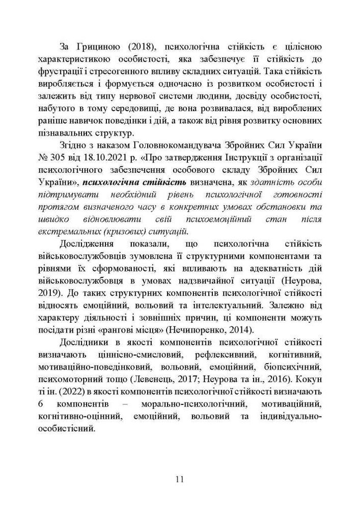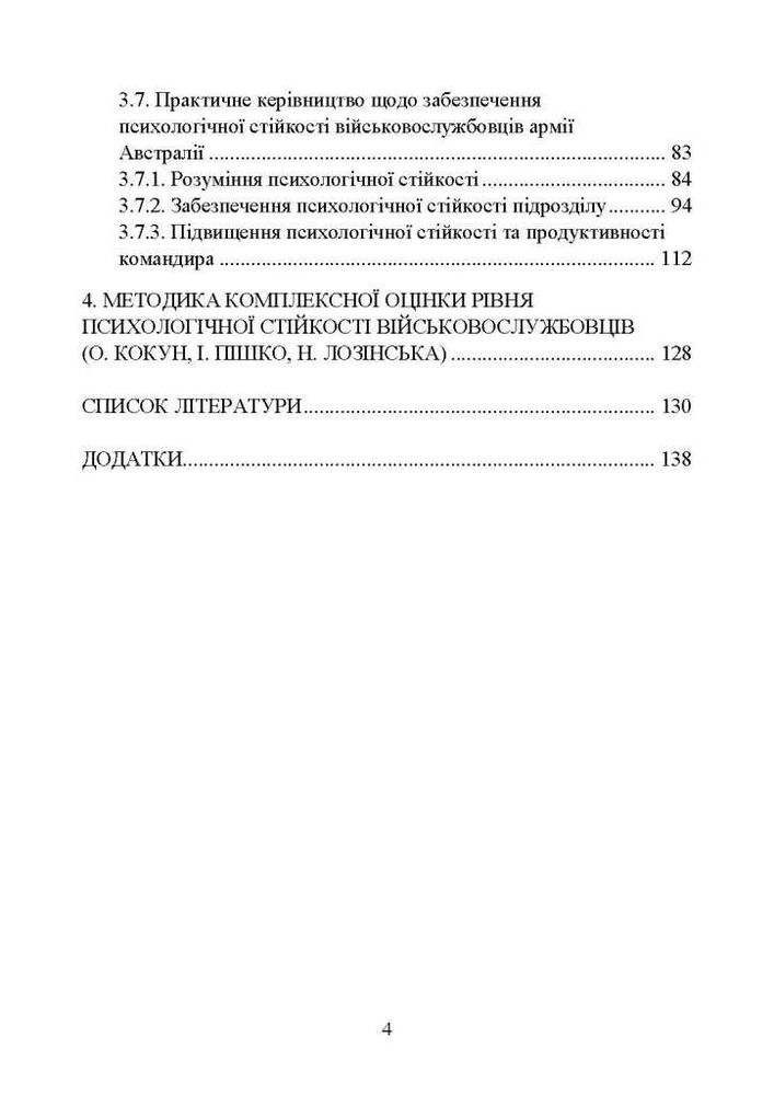 У методичному посібнику викладено сучасні теоретичні основи формування психологічної стійкості військовослужбовців з урахуванням стресорів їх професійної діяльності, чинників та гендерних особливостей психологічної стійкості.